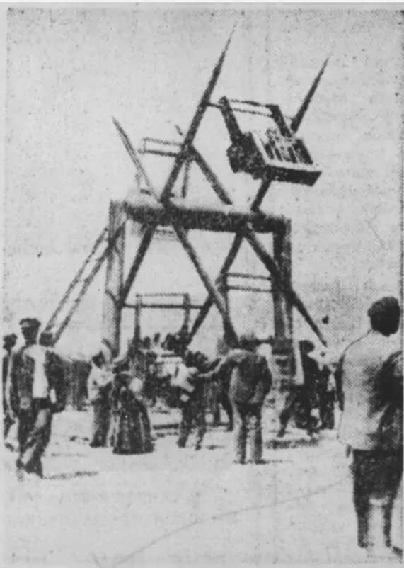 Конструкция была изготовлена из дерева и на ней помещалось до четырех пар человек. Работала карусель по принципу весов, когда одна кабинка поднималась, другая опускалась. Кабинку закрепляли так, что она качалась в воздухе. Высота была несколько метров над землей и качались отдыхающие, сидя на скамье. В то время с минимальными развлечениями люди получали непревзойденные ощущения и адреналин.